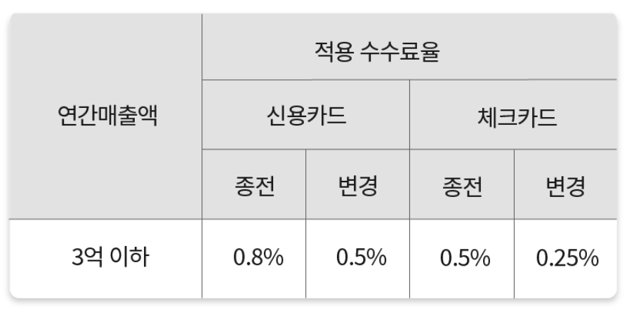 카드사 가맹점으로 등록하고 나면 내 매장(가게)의 매출 실적을 증빙할 수 없기 때문에 일반 카드가맹점 수수료율을 적용받게 됩니다. 그리고 1년에 두번 상,하반기 카드 매출 실적으로 통해 영세.중소가맹점으로 선정이 되면 "우대수수료율"을 적용받게 됩니다